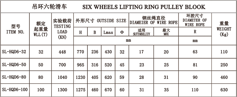 六轮吊环滑车